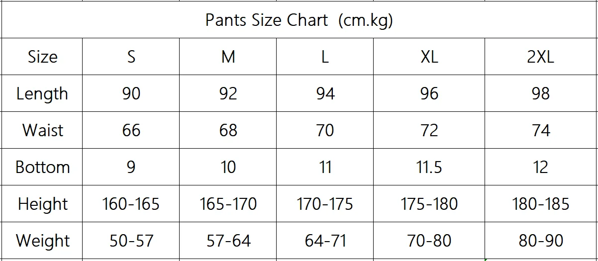 Size 2XL: suitable height 180cm-185cm, weight 80-90kg