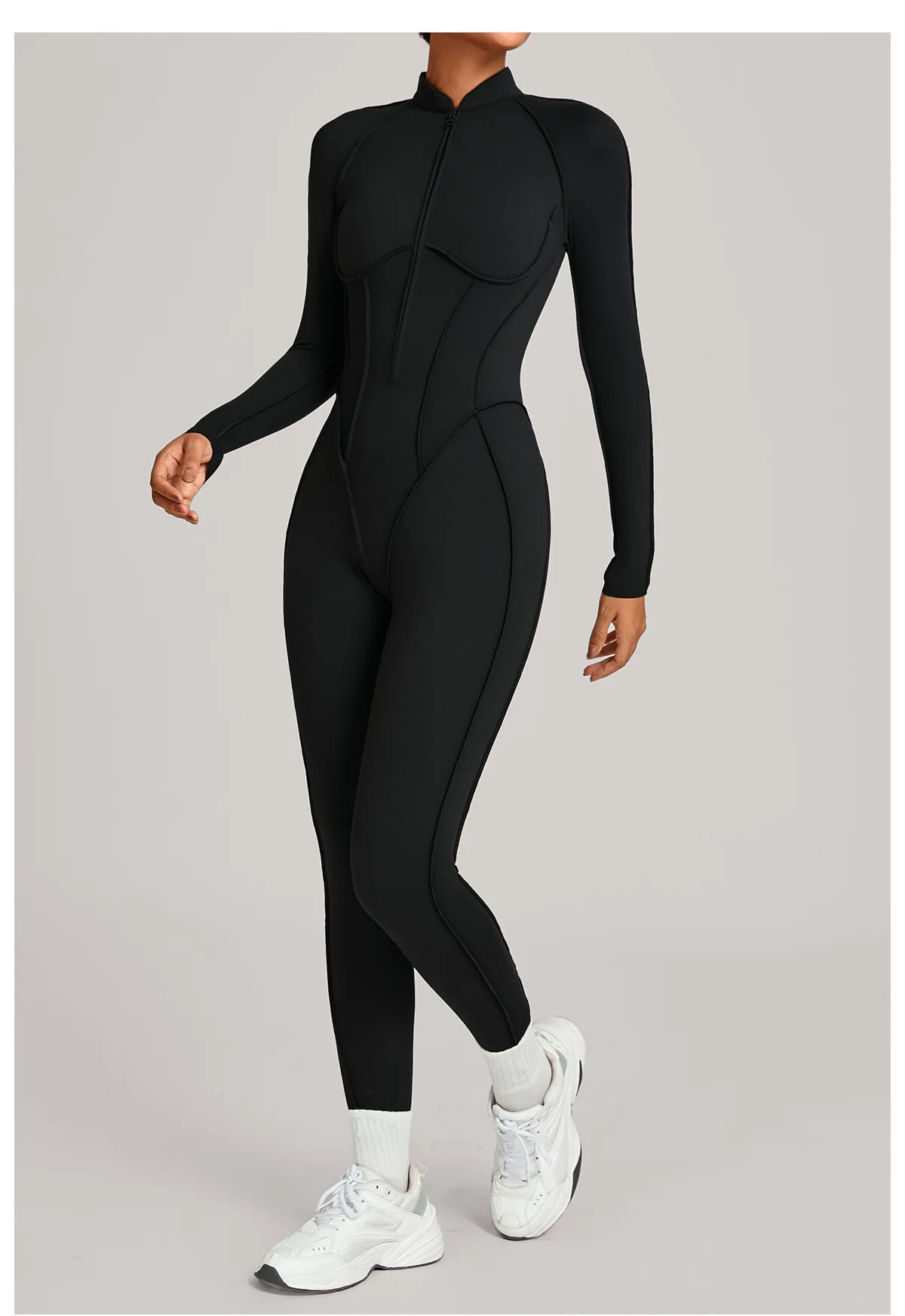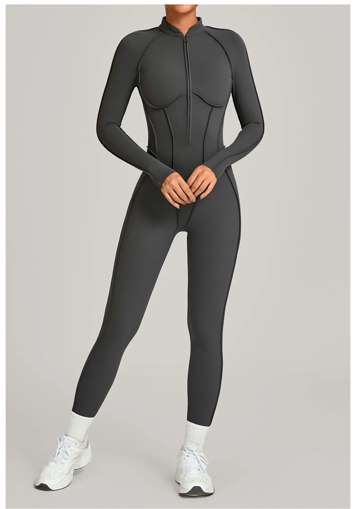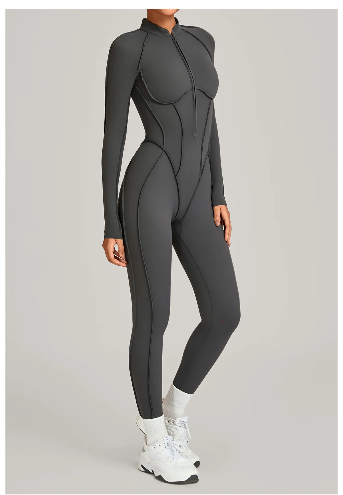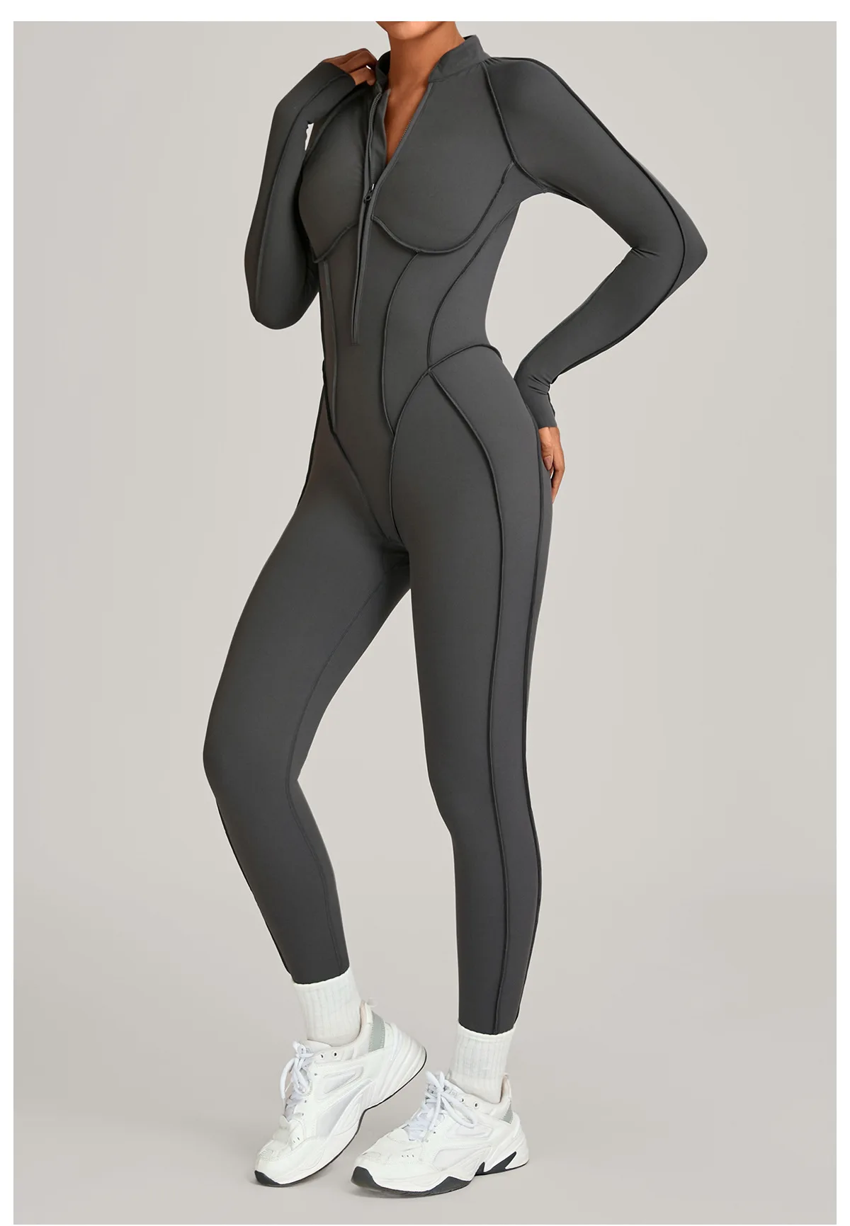 Women Yoga Fitness Bodysuits Sports Jumpsuit Zipper & Chest Cushion Gym One-Piece Female High Elasticity Gym Workout Bodysuits