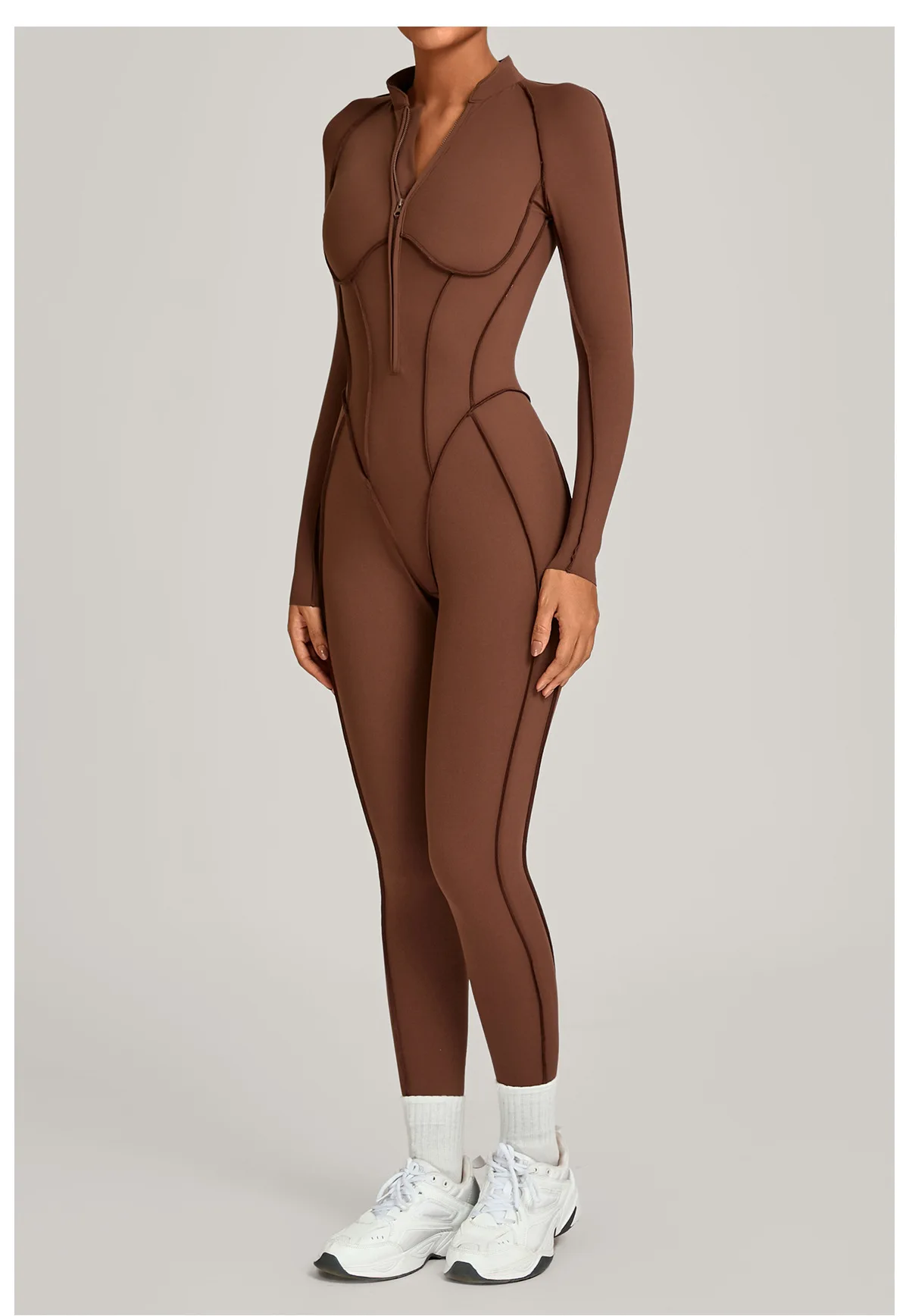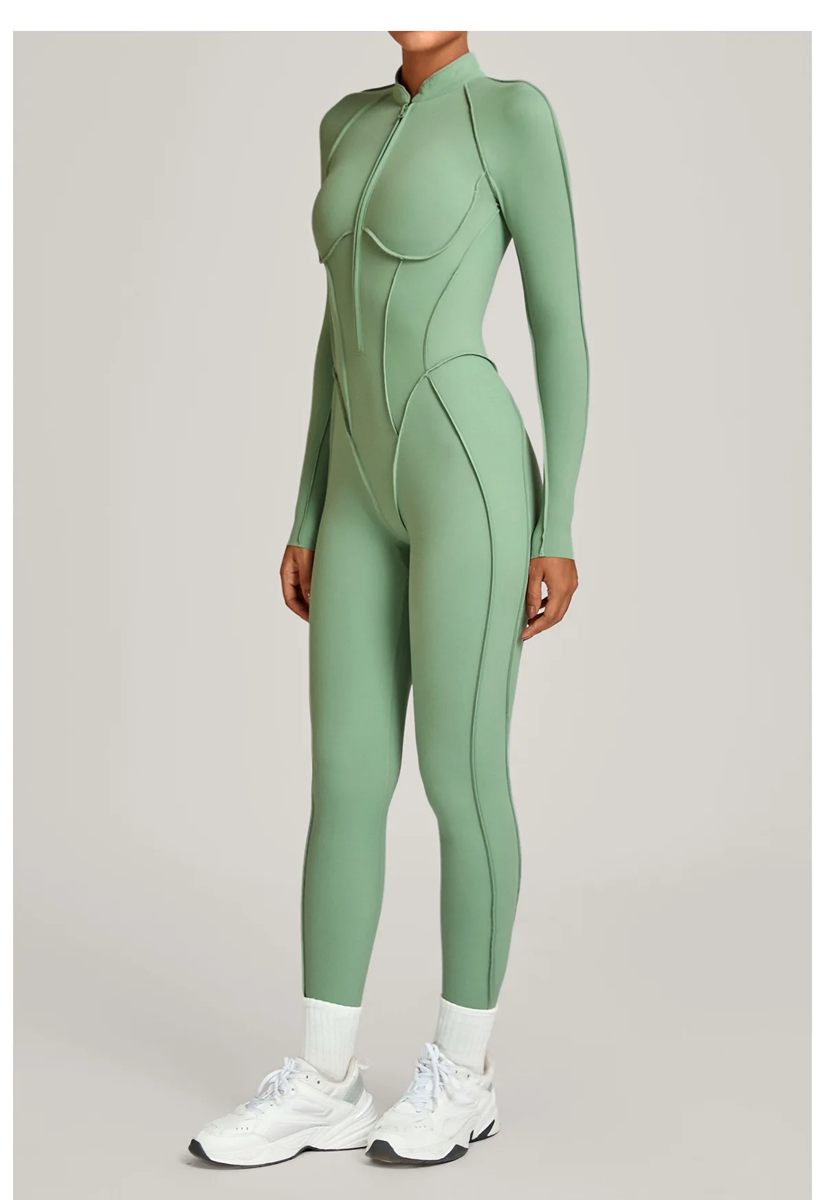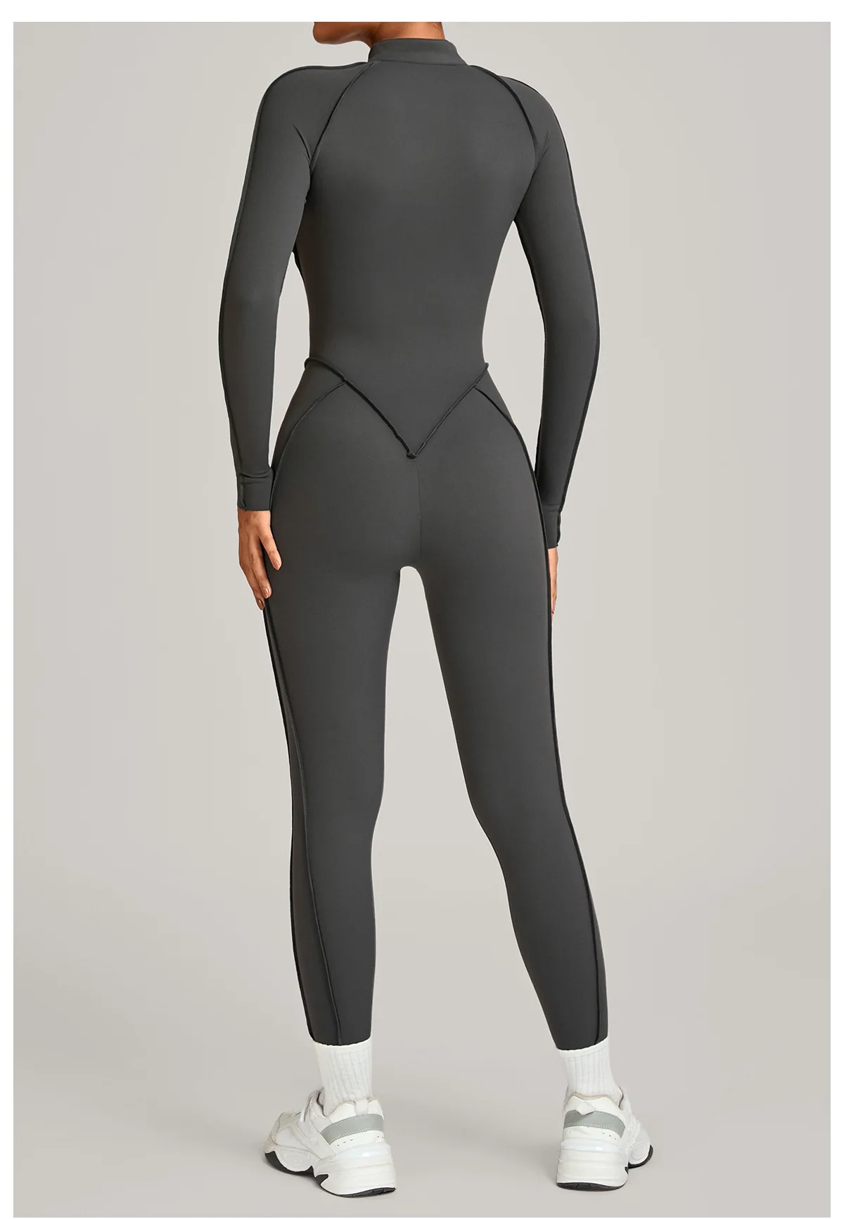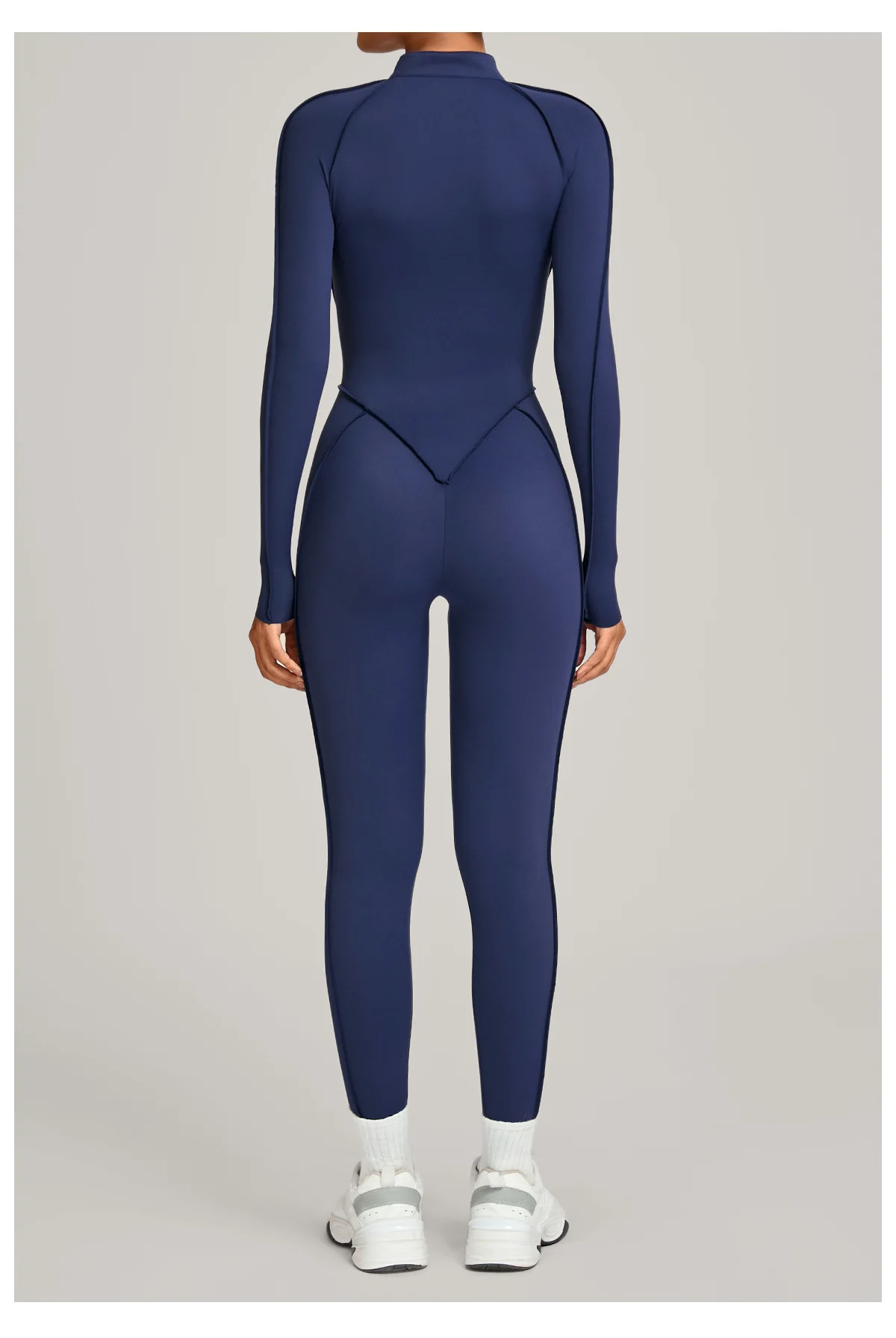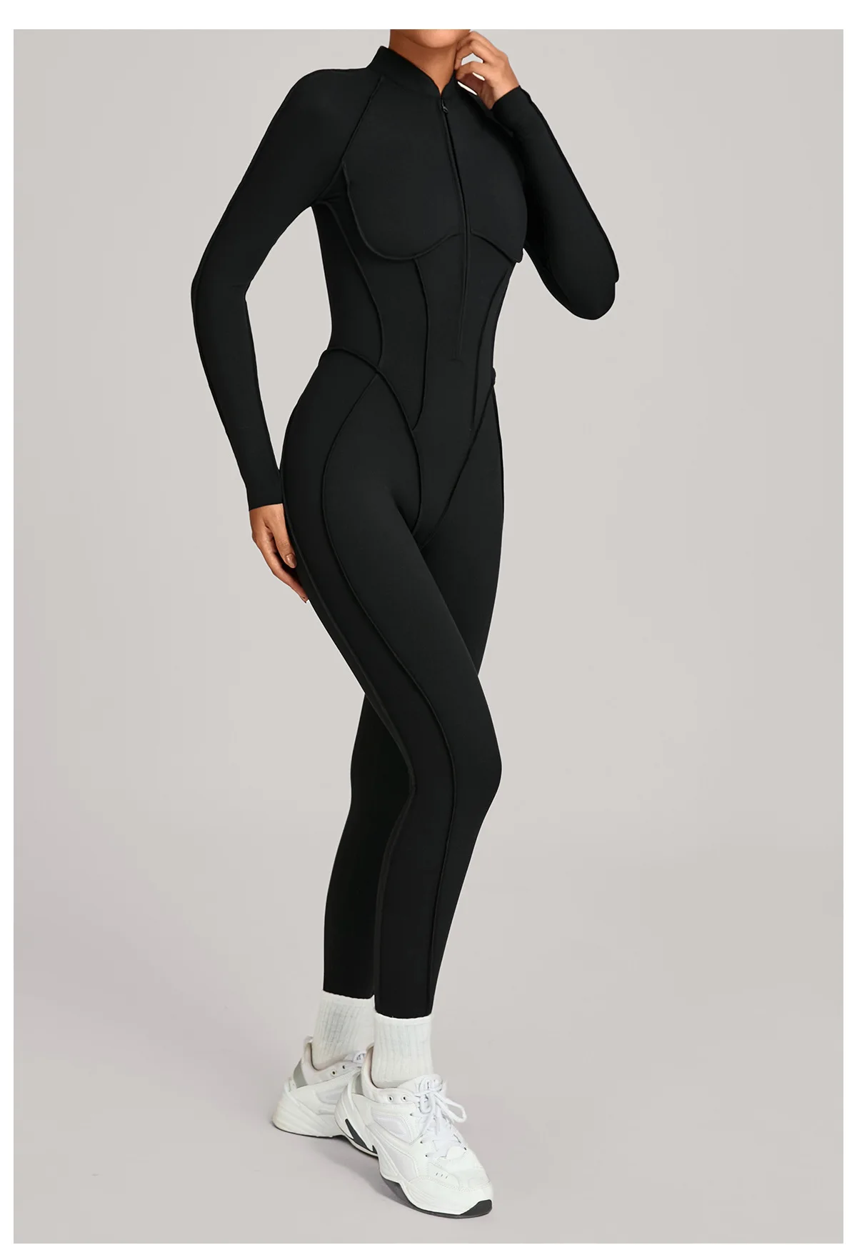 Women Yoga Fitness Bodysuits Sports Jumpsuit Zipper & Chest Cushion Gym One-Piece Female High Elasticity Gym Workout Bodysuits