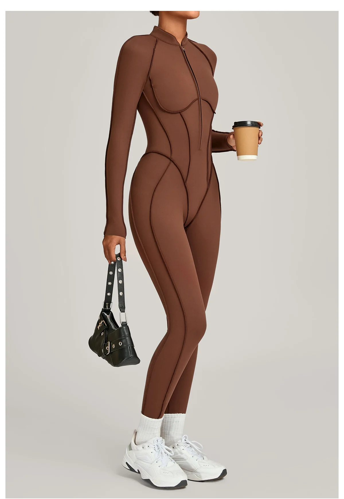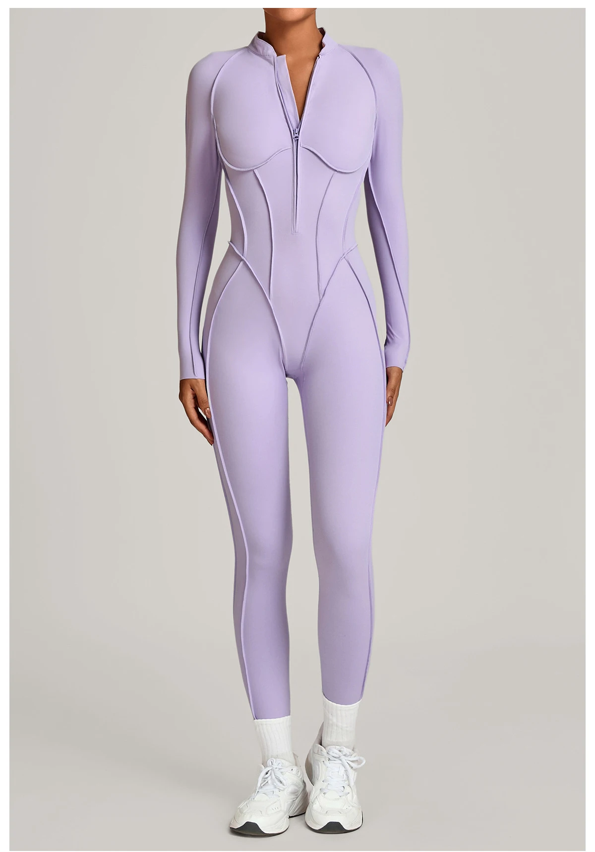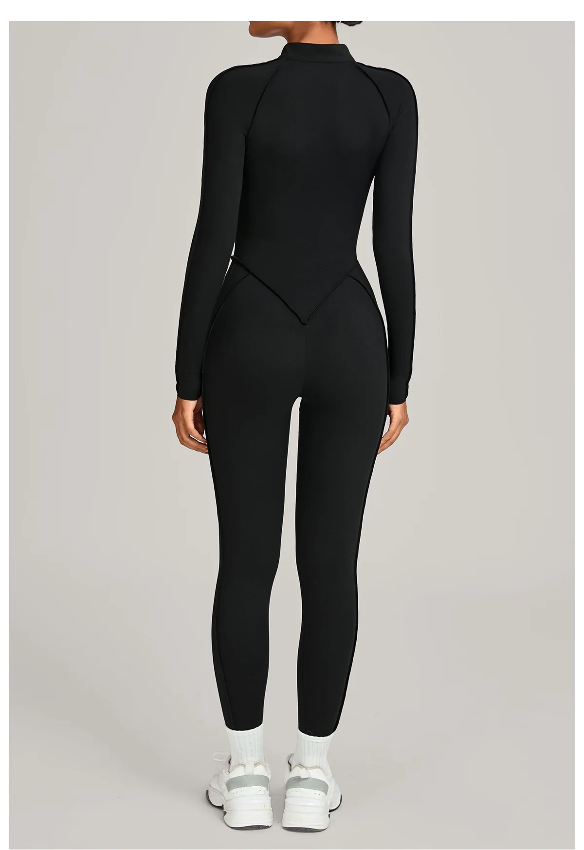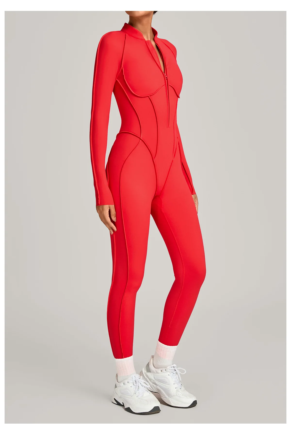 Women Yoga Fitness Bodysuits Sports Jumpsuit Zipper & Chest Cushion Gym One-Piece Female High Elasticity Gym Workout Bodysuits