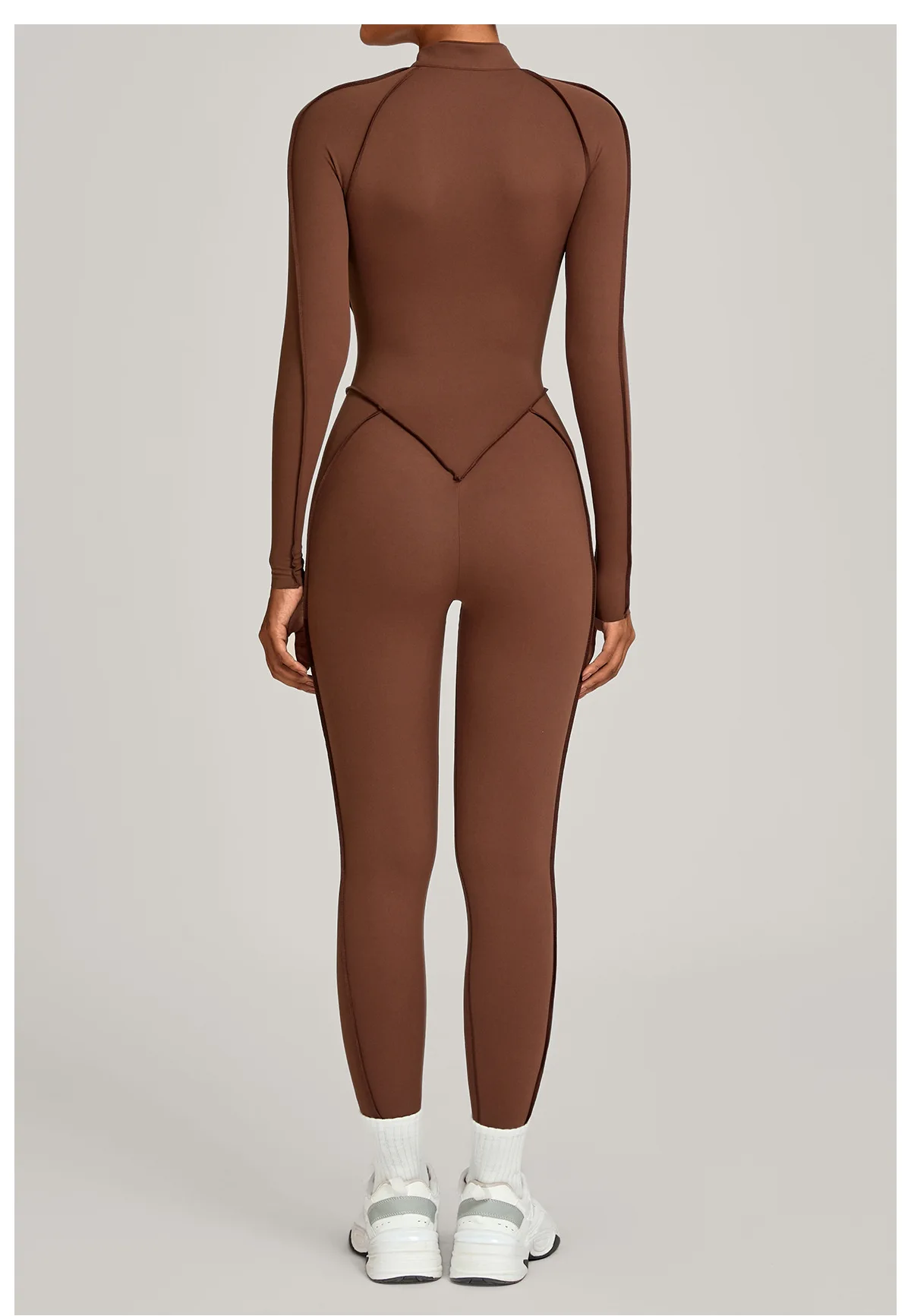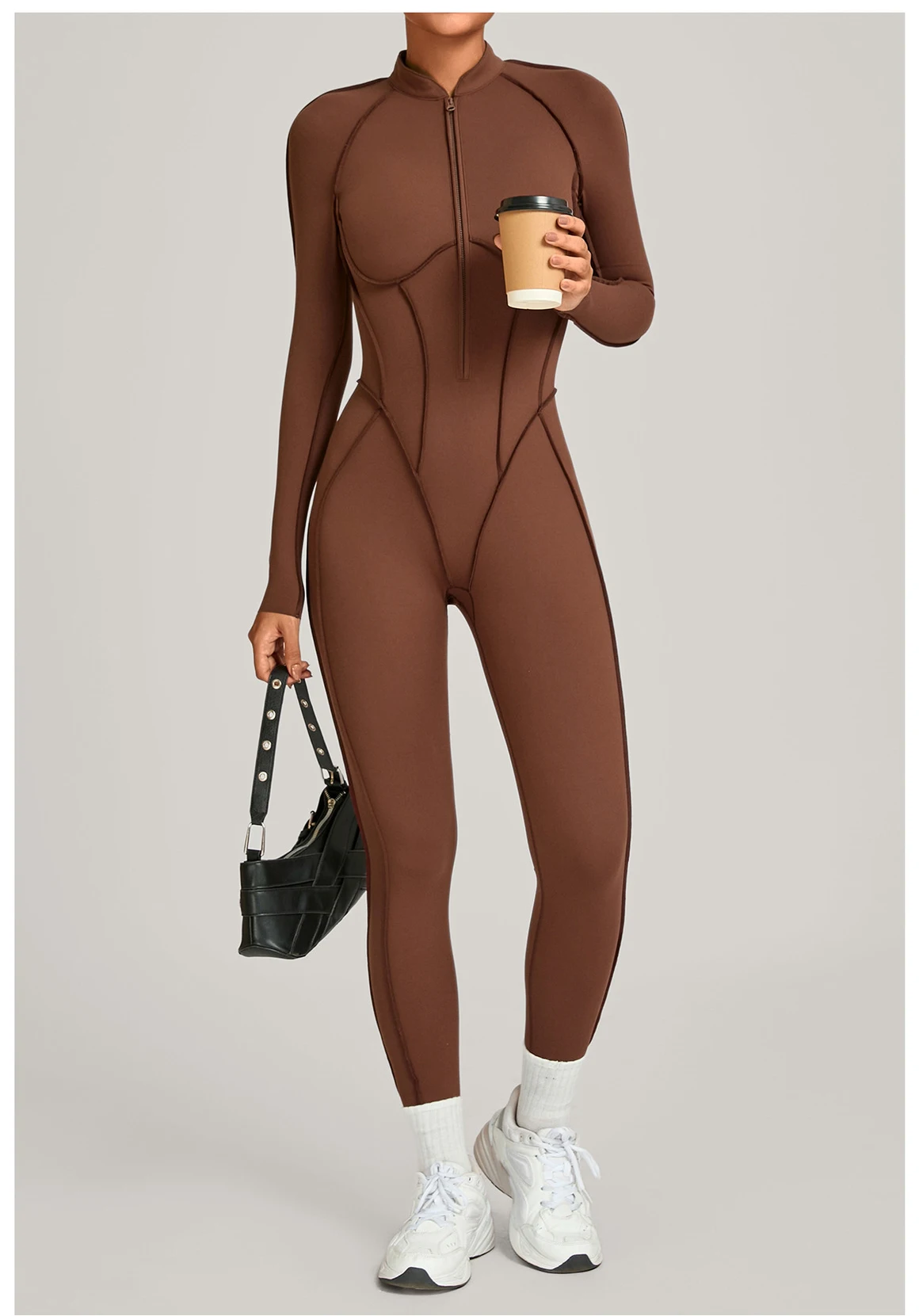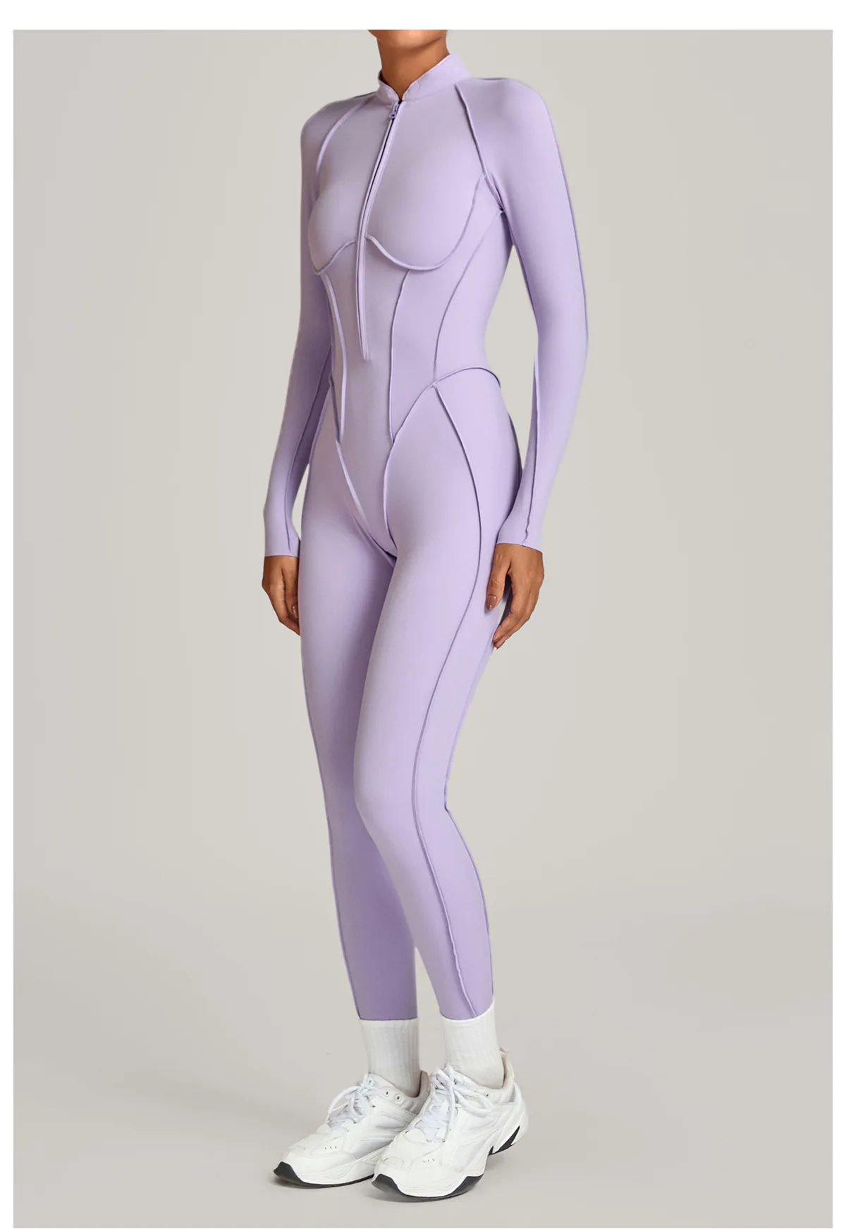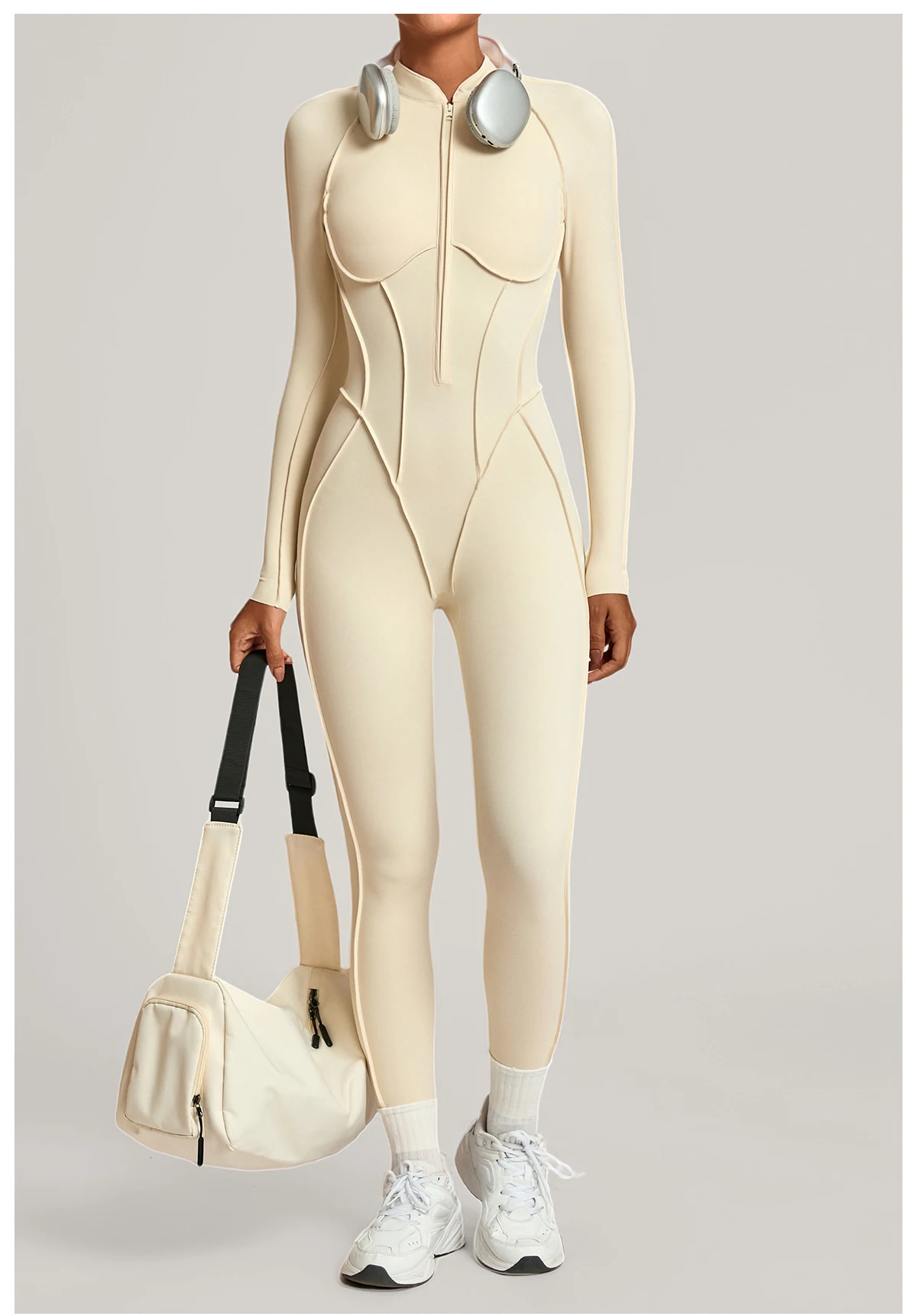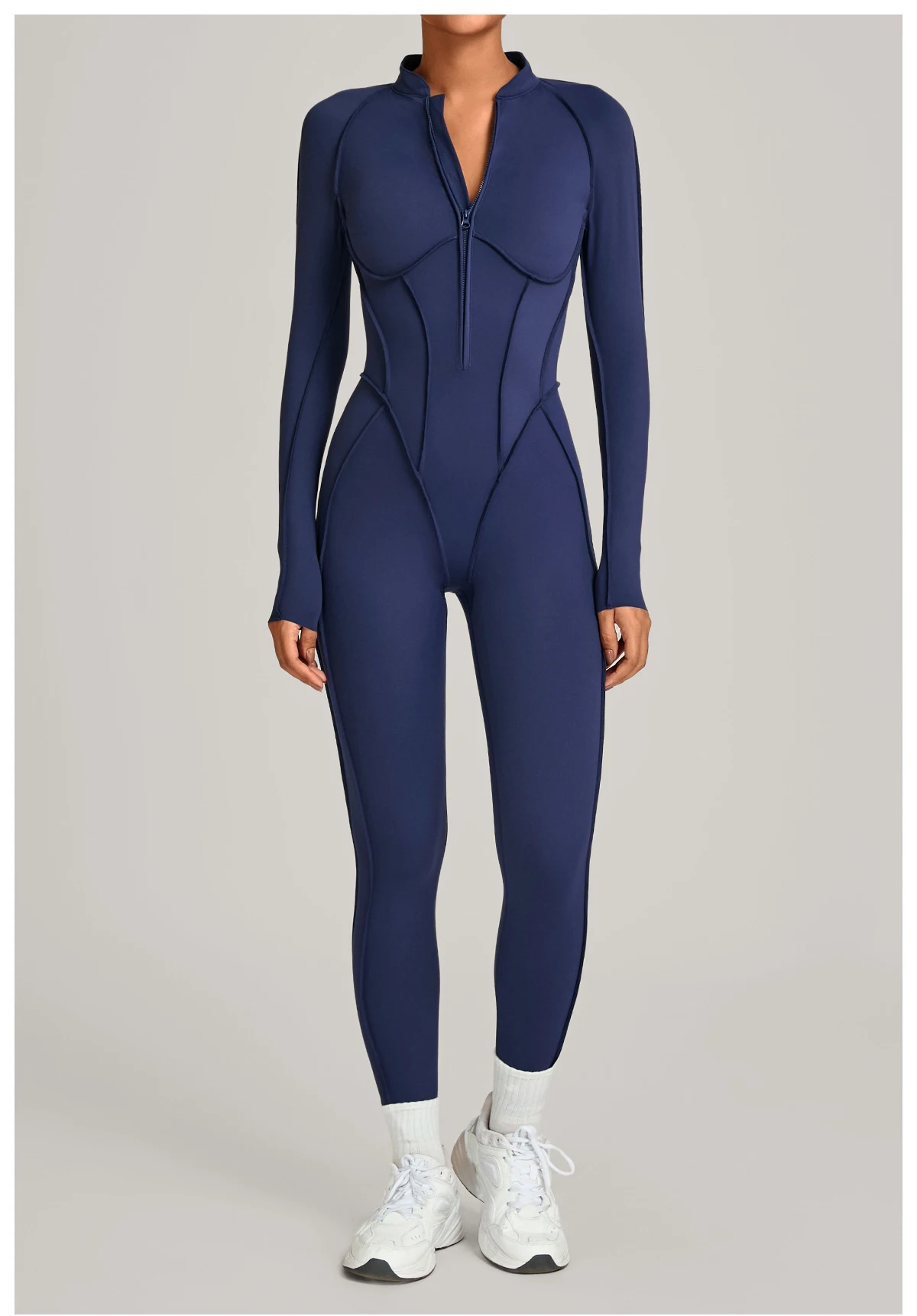 Women Yoga Fitness Bodysuits Sports Jumpsuit Zipper & Chest Cushion Gym One-Piece Female High Elasticity Gym Workout Bodysuits