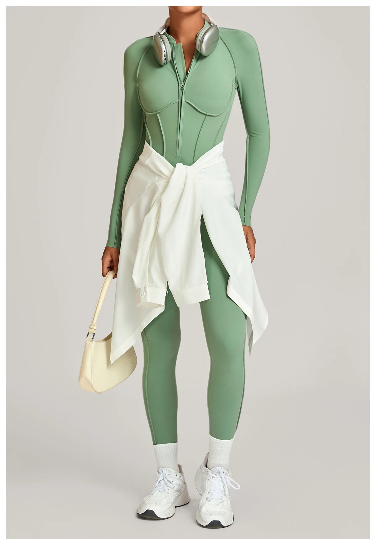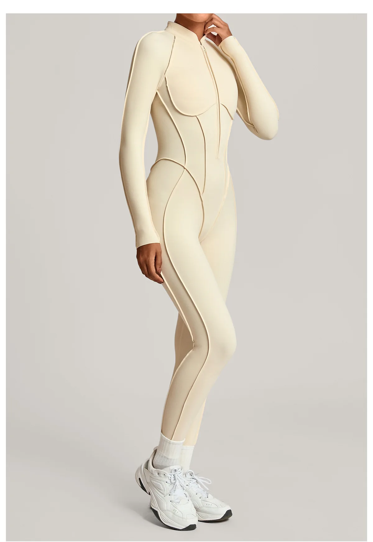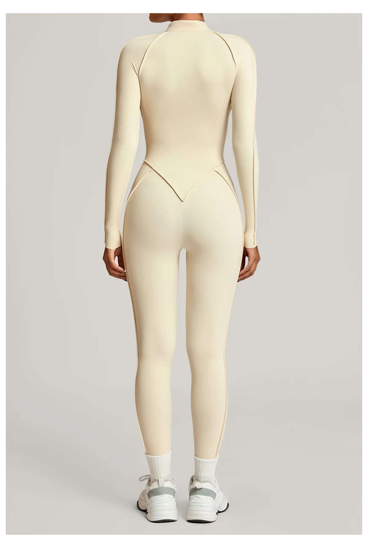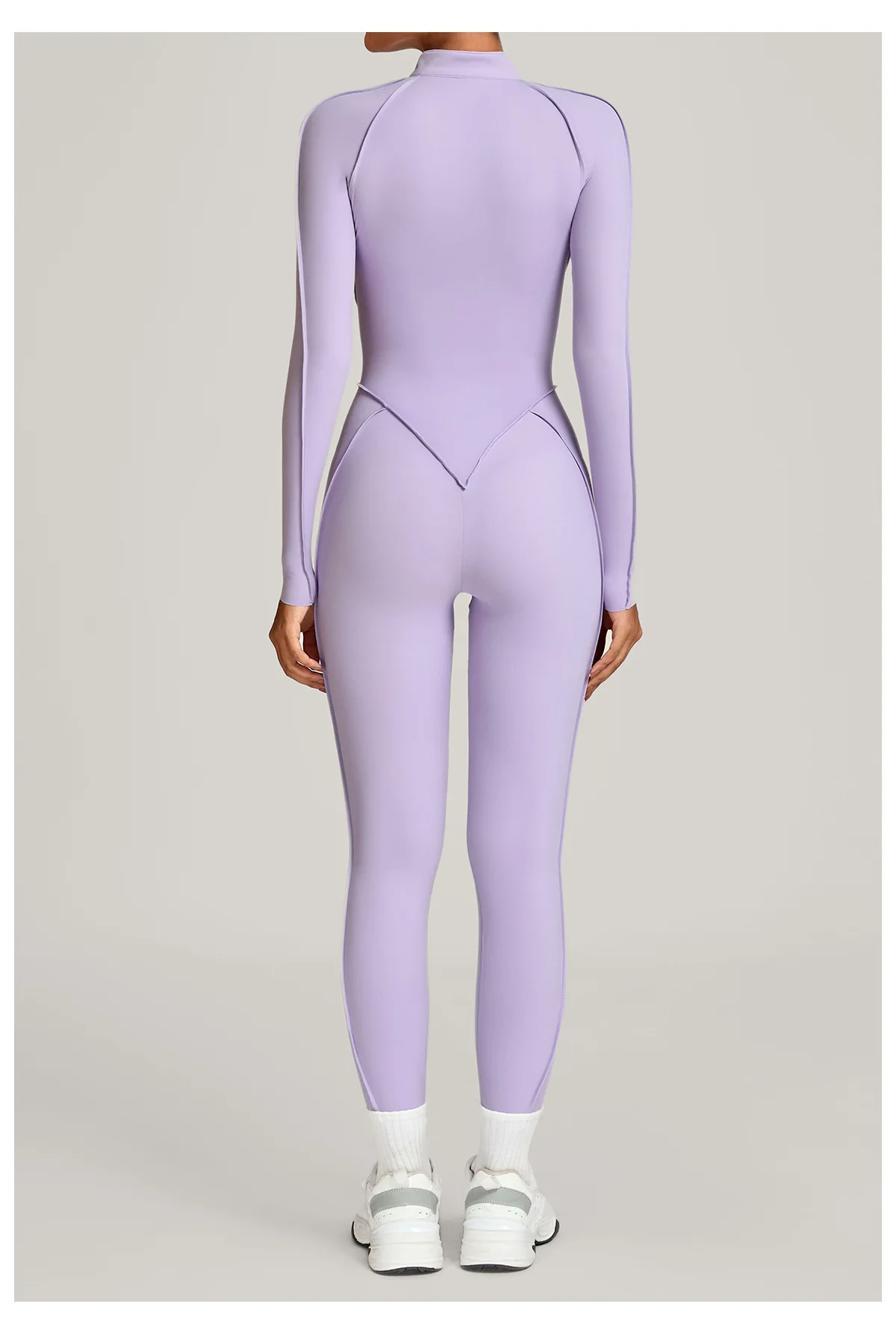 Women Yoga Fitness Bodysuits Sports Jumpsuit Zipper & Chest Cushion Gym One-Piece Female High Elasticity Gym Workout Bodysuits